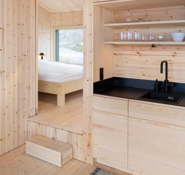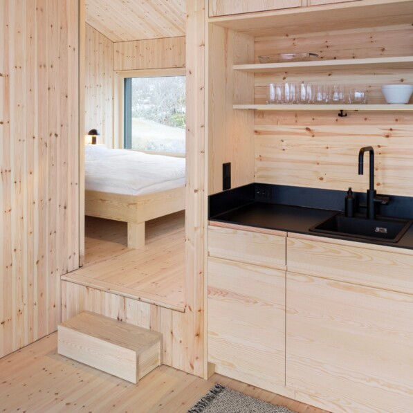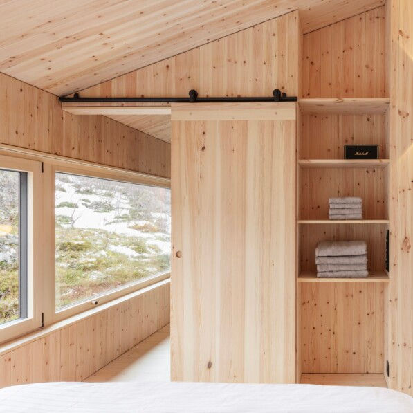 The Black Aurora Nook is a contemporary holiday cabin situated in the remote and rugged landscape of the Lofoten archipelago in northern Norway. Designed by Austrian architect Elisabeth Dirnbacher of Atelier Dirnbacher and completed in 2022, the 65 m² retreat offers a striking contrast of robust exteriors against a cozy and warm interior. Nestled between the vast Austnesfjord and the imposing Higravstinden, the cabin is a destination for families, couples, and nature lovers seeking to immerse themselves in the dramatic arctic scenery. The architecture is defined by a simple, cubature form that plays with the dimensions of the surrounding environment. Architect Elisabeth Dirnbacher was inspired by a summer trip to the region and aimed to create a unique holiday house that would complement the astonishing beauty of the islands. The black-stained, timber-framed cabin is designed to blend into the dark, mountainous landscape, while its interior opens up to provide a luxurious and immersive experience of nature. The interior of the Black Aurora Nook is a showcase of handcrafted woodwork and clever spatial design. The cabin is divided into two rectangular areas, but features varied ceiling heights ranging from two to five and a half meters, creating an exciting spatial experience. The main living space includes an open kitchen and a cozy sitting area with a wood-burning stove. Large, floor-to-ceiling windows provide a widescreen view of the fjord, the open sea, and the mountain. A staircase from the master bedroom leads to a gallery with a window bench, perfect for observing the northern lights or sea eagles. A second sleeping gallery for children is accessible by a ladder. Untreated wood, handcrafted by a local carpenter, is used throughout the cabin for wall paneling, built-in furniture, and a three-meter-high sliding door that can separate the dining room and master bedroom. The cabin was designed as a high-performance timber-framed construction with sustainability in mind. Comfort in the cold: Despite the harsh northern climate, the cabin is kept comfortable with a wood-burning stove and underfloor heating in the sleeping areas. The minimalist design, coupled with the natural weathering of the timber, helps the cabin settle naturally into its remote surroundings. Project credits Architect: Atelier Dirnbacher (Elisabeth Dirnbacher) Photography: Paul Sebesta Location: Lofoten, Norway Completion Year: 2022