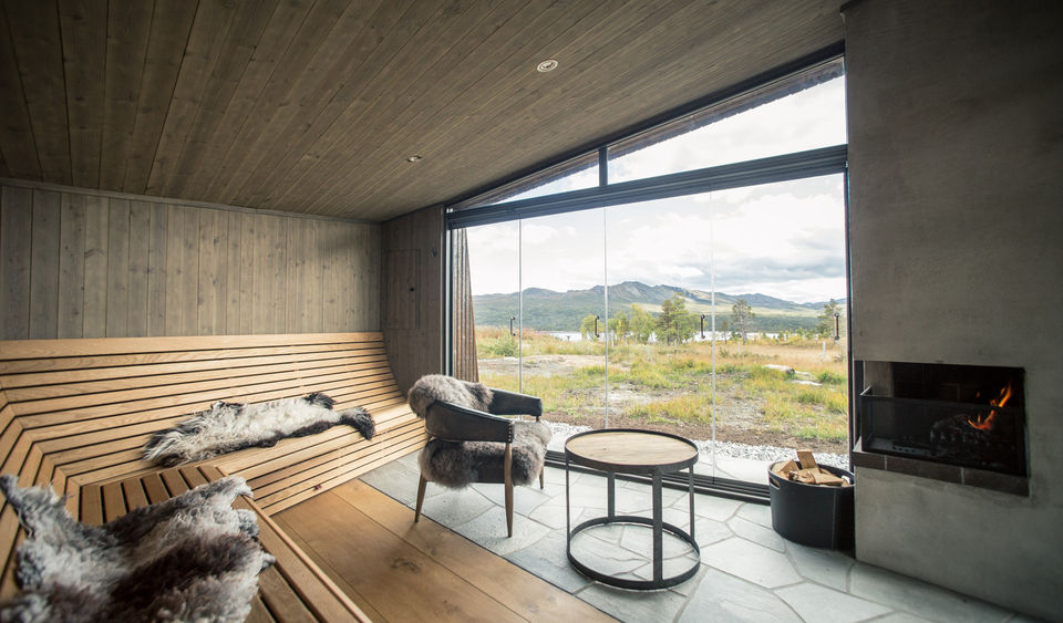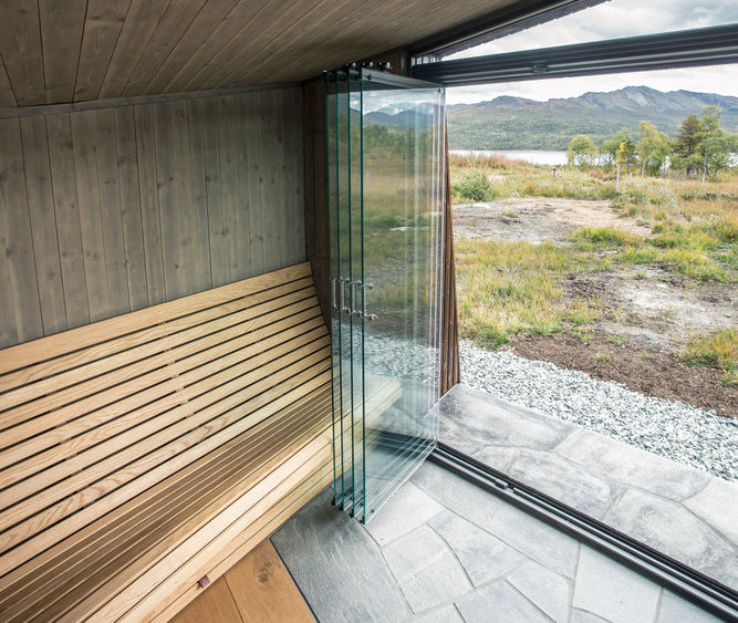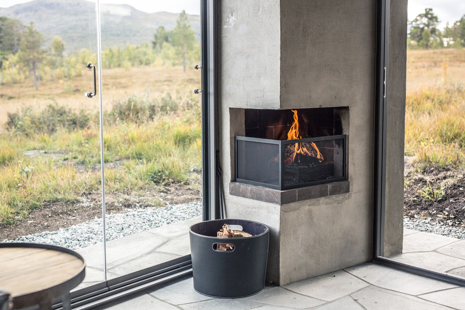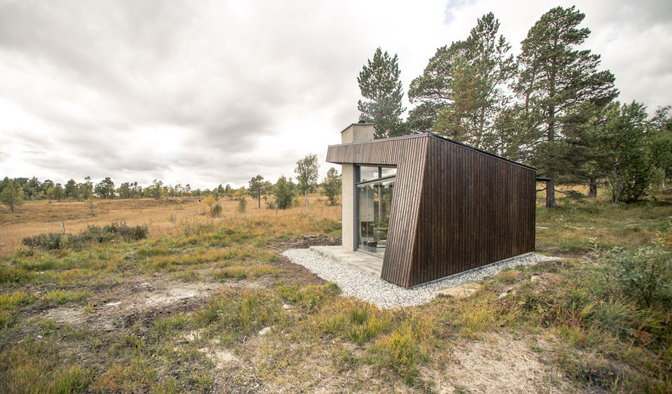 Designed by Trondheim-based Bergersen Arkitekter AS and completed in 2017, Viewpoint Granasjøen is a small, multi-functional cabin situated in the scenic Trollheimen mountain region of Norway. Overlooking the Granasjøen lake, the structure serves as a modern reinterpretation of the traditional Norwegian gapahuk, or lean-to. It was designed in close collaboration with the client to serve a range of purposes, including a shelter, summer house, bath house, or grill shed. The cabin's design is heavily influenced by its surrounding landscape. The angled walls and roof help the small building blend seamlessly into the rugged, mountainous environment. A traditional turf roof provides insulation and further integrates the structure with the landscape by mimicking the natural greenery. The exterior is clad in dark brown stained wood, which was chosen to complement the existing main cabin on the property. Inside, the cabin is designed for both relaxation and appreciation of the outdoors. Large, floor-to-ceiling sliding glass doors on the front facade can be opened up, blurring the line between inside and out and offering expansive views of the lake and mountains. A built-in wood bench wraps around two sides of the room, providing ample seating that faces the view. A small, built-in fireplace adds warmth and a cozy focal point. The interior features simple wood finishes and stone flooring that continues out onto the terrace. Project credits Architects: Bergersen Arkitekter AS Photography: Kjetil Nordø Location: Trollheimen, Norway Project Year: 2017 Manufacturers: Bergene Holm AS (interior wood panels), Otretek AS (furniture carpenter), Profil Fasade AS and Windoor AS (glass panels and doors)