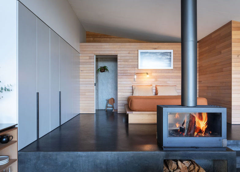 The Lookout Cabin, designed by Dana McCarter Architecture, is a small, two-story guest house located on Bruny Island off the coast of Tasmania, Australia. Situated on a grassy paddock, the cabin is designed to blend quietly into the island's unique coastal landscape while offering dramatic, uninterrupted views of the Tasman Sea. The cabin is designed for both immersion in nature and quiet refuge from the elements. The layout emphasizes a strong connection between the interior and the rugged, natural environment. With its materials chosen to weather and age gracefully, the cabin reinforces a sense of permanence and belonging within the Tasmanian landscape. The Lookout is situated on Lunawuni/Bruny Island, a location known for its windswept coastal beauty. This specific site allows the cabin to feel secluded while maximizing the spectacular ocean views. The exterior cladding is made from materials chosen for their resilience against the harsh coastal climate and their ability to age beautifully over time, helping the cabin to settle into the landscape. The interior palette is warm and durable, balancing exposed concrete elements with recycled local timbers for a tactile feel. The cabin spans two levels, ensuring that both the living and sleeping areas have expansive, uninterrupted ocean views. Oversized glass sliding doors open directly onto the rugged landscape, blurring the line between inside and out and heightening the connection to the sea. Despite its small size, the space was designed to be comfortable and functional for guest accommodation. The low-impact design of the structure allows for a unique, intimate experience of the native wildlife and vegetation. The design emphasizes observing the natural world from a position of warmth and safety. Project credits Architects: Dana McCarter Architecture. Principal: Dana McCarter. Photography: Adam Gibson.