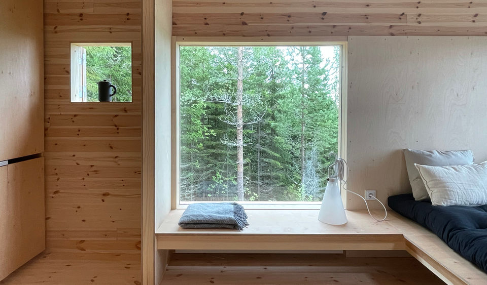 A tranquil wooden cabin perched on a hillside in Northern Sweden, the Söderloftet is a project by the architectural studio Fria Folket and is part of the Bergaliv landscape hotel. Completed in 2021, the small getaway cabin is located on a rock ledge on Åsberget mountain and offers a spectacular vista over the Ljusnan river valley. The name, meaning "South Loft," reflects its positioning. The structure is raised on slender pillars, a design choice that makes it appear to float among the surrounding treetops and balances the expansive landscape with a fine-tuned connection to the nearby forest. The 20-square-meter cabin consists of two main parts: a closed, heated living area and a large, open-air veranda that includes a covered viewing platform. The sheltered space features an extensive ceiling height of 4.5 meters, which provides an airy ambiance and allows for a smaller sleeping loft above the main living area. Inside, the design marries Nordic minimalism with Japanese-inspired aesthetics, using clean lines and light woods such as birch, fir, and heart pine. The flexible layout and minimal furnishings serve to emphasize the views of nature. A low wooden platform, for instance, can function as seating, a bed, or a space for yoga. To maximize its connection with the surrounding environment, the cabin's construction avoids plastics, and the walls and roof are insulated with flax fibers, a nod to traditional Nordic building methods. The Söderloftet stands as a serene and unobtrusive retreat, designed to help visitors escape a hectic life and find tranquility in nature. Credits Architects: Fria Folket Lead Architect: Hanna Michelson Client/Partner: Bergaliv landscape hotel Contractor: AJ Hälsinge renovering och bygg and Bygg Produktion i Bollnäs AB Photographs: Hanna Michelson