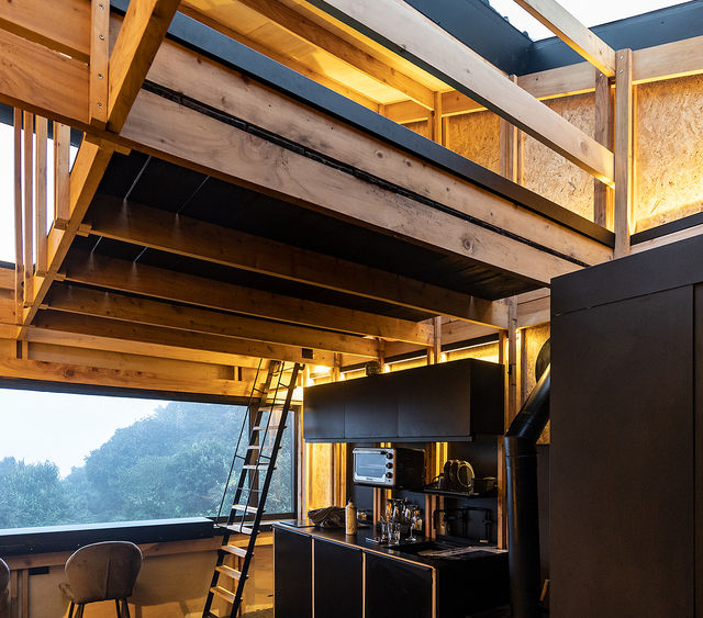 Designed by Javier Mera Luna in collaboration with Lesly Villagrán and María Beatriz Moncayo, "Arrachay 01" is a 25-square-meter workspace cabin perched over 4,000 meters above sea level in the Andes Mountains of Ecuador. Completed in 2020, the project was conceived as an auto-commissioned "workation" retreat to challenge new ways of working remotely in a stunning natural setting. The name "Arrachay" is a playful nod to the local Quichua language, combining achachay ("very cold") and arrarray ("very hot," referencing nearby thermal pools) to capture the contrast of the extreme mountain climate. The main architectural challenge was to create efficient insulation in the cold, high-altitude climate without relying on petroleum-based materials, which aligned with the architects' goal for a minimal carbon footprint. To achieve this, the team collaborated with YES Innovation to develop and utilize BIOM, a biosource insulation made from rice fibers. This innovative material repurposes agricultural waste from coastal communities in Ecuador, creating a circular economy. The BIOM insulation was hand-packed into the wooden perimeter structure and treated with a natural fire retardant, ensuring high thermal performance despite wide temperature variations. The use of bulk insulation also helps optimize on-site installation and prevent thermal bridging. The cabin’s timber structure is designed to be flexible and adaptive, blending harmoniously with the cloud-cloaked, mountainous landscape. A large window wall provides a visual connection to the breathtaking natural surroundings. The project embodies a philosophy of incorporating local technology and addressing environmental challenges through small-scale, thoughtful architecture. Credits Architects: Javier Mera Luna, Lesly Villagrán, and María Beatriz Moncayo Insulation Development: YES Innovation Photography: JAG Studio Location: Papallacta, Ecuador