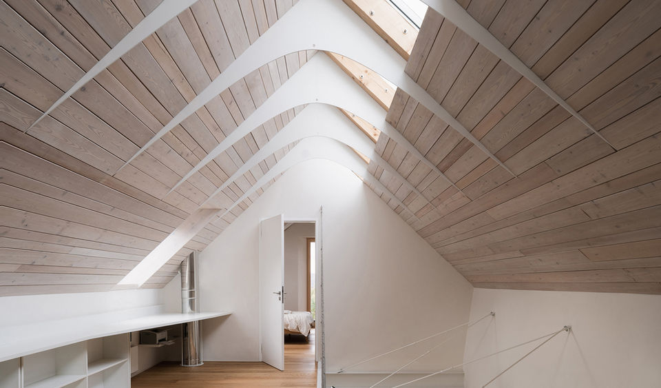 "The House in Zbraslav, also referred to as the Zigzag House, is a family residence in the Czech Republic that was rebuilt by Martin Neruda Architektura after being damaged by fire. Completed in 2021, the project involved saving a single-family house on a corner plot in the village of Baně, southeast of Zbraslav. The fire had destroyed the ceilings and roof, but the architectural alterations honored the original footprint and volume of the historic village home. The renovation introduced a new, striking element: a hidden, underground garage integrated into the site's redesign. Above the garage, a green slope was created, enhancing the existing garden and blending seamlessly into the landscape. In addition to preserving the core structure, the reconstruction added a new glazed vestibule and terrace, which significantly updated the house's connection to its surroundings. Credits Architect: Martin Neruda Architektura Photography: Alex Shoots Buildings Structural Engineers: Tomáš Novotný Construction: Stavitelství Drážka Landscape: Jan Kocourek"