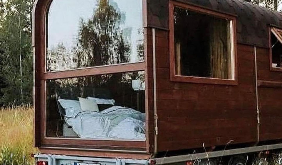"The NATURE POD is an eco-friendly and mobile wooden cabin designed by the Swedish company Vagabond Haven. Constructed from ThermoWood pine, which is known for its robustness and durability, the cabin can function as a mobile home, a garden office, or a wilderness retreat. Its compact size, measuring 6 meters long, 2.3 meters wide, and 2.5 meters high, means it can be moved easily on a flatbed truck or a custom trailer. The design is unique for its frameless construction, where four inner wall segments support the outer ThermoWood walls. This method reduces the amount of material, assembly time, weight, and cost. For the roof, durable and easy-to-install asphalt shingles are used. Large panorama windows in the bedroom and smaller operable windows in the kitchen and bathroom blur the line between indoor and outdoor living and create a feeling of openness in the 14-square-meter space. The NATURE POD can be customized with various features, including a kitchen and bathroom for full self-sufficiency. Off-grid living is possible with the addition of solar panels for electricity, a dry toilet, and water tanks. For heating in colder climates, options include radiators, floor heating, or a wood stove. The interior has a minimalist, natural aesthetic, with the option to customize exterior and interior colors and finishes. Credits Company: Vagabond Haven Photography: Vagabond Haven Manufacturer: Constructed in partnership with Aurora Company in Poland"