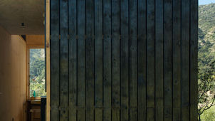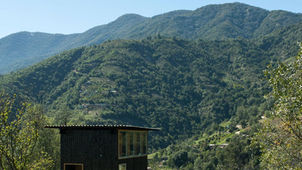 Constructed in 2014 by Chilean studio DRAA (del Rio Arquitectos Asociados) for a budget of just $15,000, the Charred Cabin is a 15-square-meter weekend retreat located on a historic mountain road in Olmué, Chile. Situated on a steep hillside, the cabin is elevated on stilts to maximize views of the surrounding coastal mountains and historic landscape. Its design was influenced by the site's unique history and melancholy atmosphere, serving as a minimalist mountain hideout for an academic couple.