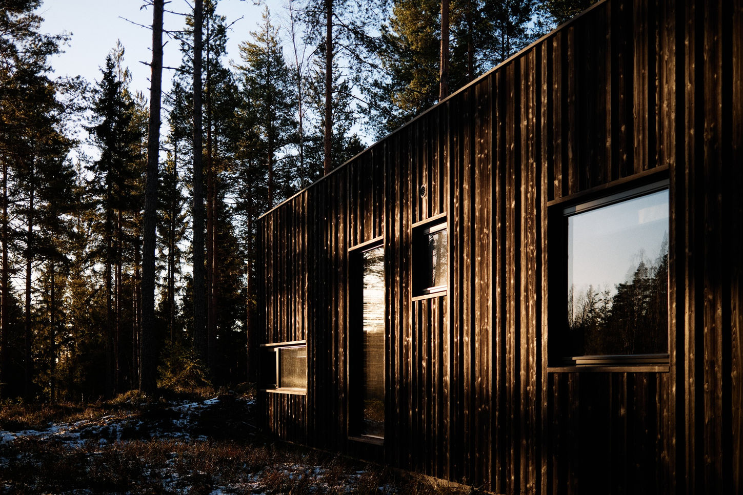 Hop Farm Beach is a digital detox cabin located in Hälsingland, Sweden, set within a coastal forest. This Scandinavian-designed structure features a distinctive black timber exterior and floor-to-ceiling windows, ensuring ample natural light and views of the surrounding landscape. With a total area of 32 m², the cabin accommodates up to four guests and includes heated floors throughout for comfort. Designed explicitly as an offline retreat, Hop Farm Beach is devoid of WiFi and television, encouraging guests to disconnect from digital distractions. A wooden box near the entrance provides a dedicated space for phones during stays, further promoting a focus on relaxation and mindfulness. The interior design emphasizes natural materials and minimal furnishings, creating a serene environment that fosters stillness and a deep connection to the forest. Large windows not only frame picturesque views of the pine trees but also ensure privacy, as the nearest neighbors are located over a kilometer away. Project Credits Architect: Mette Fredskild Photography: Cole Roberts