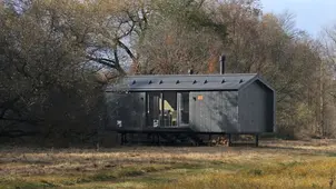 We dreamed of creating a house that could be picked up from the warehouse by the client, installed the same day, and be ready to live, without wasting time on finishing, selecting furniture, kitchens, dishes, and decor. Our new development "TOPOL 27" is just that. We have placed all the functions in one module and you no longer need to assemble a house from separate blocks. There are 5 functional areas in 27 m²: a bedroom, a kitchen, a living room, a bathroom, and a dressing room - a maximum of comfortable space in a minimum area. All this delivers by one truck and simply installs on the foundation. The project uses environmentally friendly and durable materials suitable for active use for daily rent. Solid wood and natural oak veneer are combined with black metal elements. On the floor, wear-resistant and hypoallergenic FORBO Flotex material. A large amount of glass harmoniously connects the interior and natural surroundings. The interior was designed as a one-stop solution for an investment project. Everything you need and nothing more. Each item is placed in its place, has a function, and is an integral part of the interior. The set of the house includes furniture, kitchen, curtains, dishes, cutlery, household appliances, outdoor and indoor lamps, outdoor terrace. All the decoration work is done at the factory, and you just need to put linen on the bed and put towels in the bathroom. Most of the interior items were purchased from chain stores so you can quickly replace them. Expensive materials, stone kitchen countertop by the window, wooden windows, and doors set a premium level of finishing and service, emphasizing the contrast between the wild nature around and the comfortable modern interior. The compact fireplace easily heats the entire space, creates a cozy atmosphere, and can be used for cooking. The exterior is made of black metal and wood. Such a solution delicately fits into any environment, does not dominate nature, and scales harmoniously. Architects: Ivan Ovchinnikov, Olga Sandakova, Kirill Kazakov Interior design: Anna Kandybovich Manufacture: DublDom