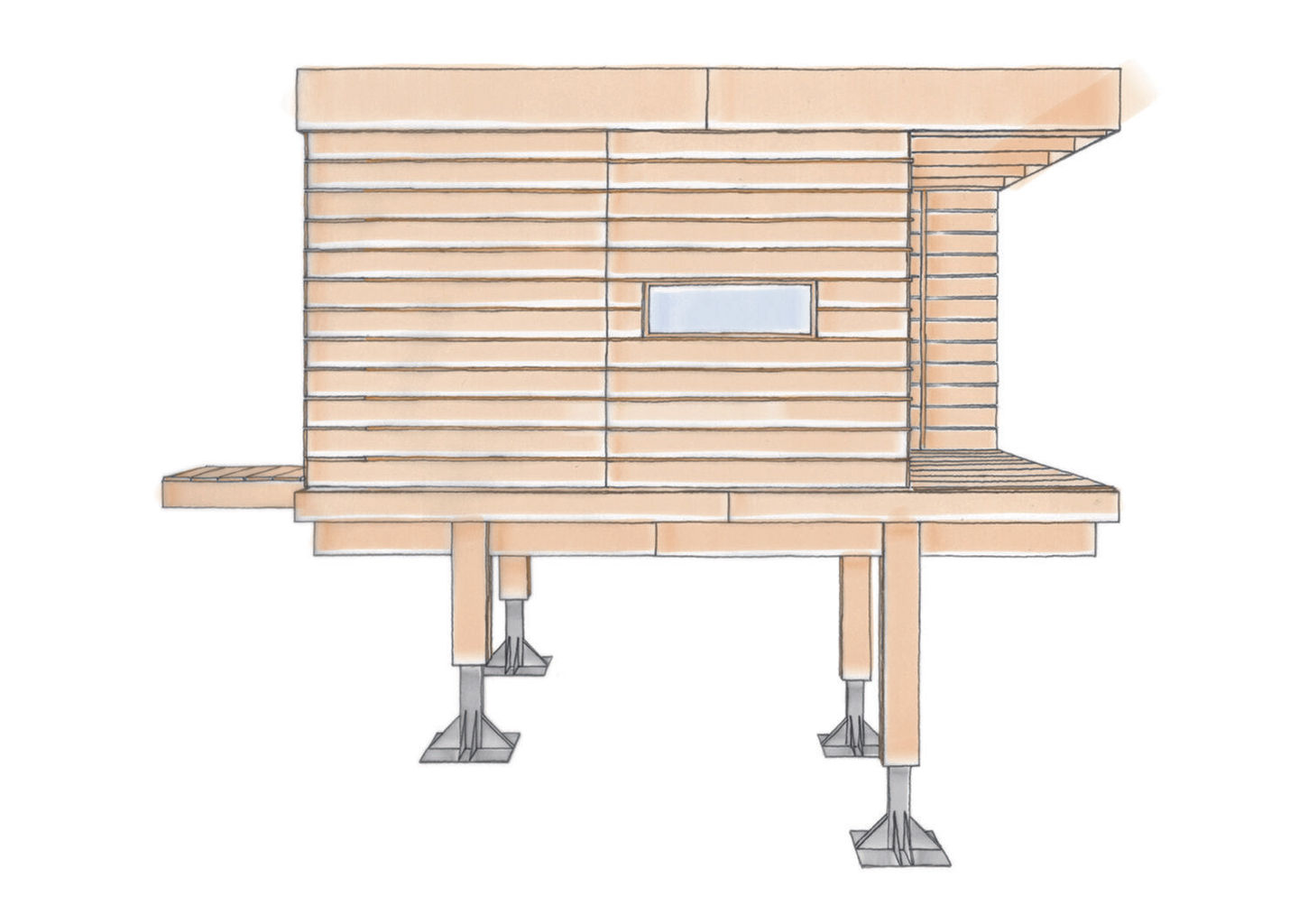 The hermitage is a space of contemplation and reflection. Isolated from the world, it overlooks a still wild valley, secluded from everything. Space, not place. This is defined by wood panel, vertical and horizontal lines that are tuned in a thin yet clear equilibrium. The artefact is a hybridization between a Japanese tea house and a Scandinavian Cabin. It seems to recall the use of materials typically used in architecture, like metal facades and beam structures, reinterpreting through the use of wood. The project was realized in two weeks by the studio team, in order to deepen compositional themes and to transmit the “design with your hands” approach to the studio. This “know how” is always characterized by the llabb architettura work. Team Study llabb Simone Camera Irene Fama