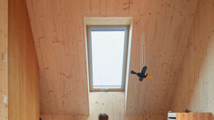 Hut-Inspired House is a residential project in Říčany, Czech Republic, designed by Prague-based Atelier Hajný. Completed in 2023, the family home was built on the site of a holiday cabin that the client had frequented since childhood. As the surrounding area began to change with new zoning plans favoring family houses, the original, beloved hut was destined for demolition. To honor the client's nostalgic connection to the site, Atelier Hajný designed a new, modern home that subtly referenced the shape and appearance of the old cabins.