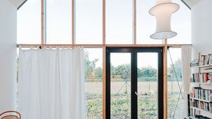 Designed by Slovakian firm JRKVC in 2013, the IST-Family House is a compact, 85-square-meter home that blends traditional rural architecture with modern living. Located in the village of Čunovo, near Bratislava, the project was conceived with a simple brief: to build a small, affordable family house on a small plot. To achieve this, the architects looked to Slovakian folk architecture for inspiration, resulting in a house with a gabled roof, small, picturesque windows, and a traditional under-roof porch known as a gánok. The house features a lightweight timber-framed structure constructed with Structural Insulated Panels (SIPs) for efficient and affordable building. A massive concrete floor serves as an effective heating system, storing thermal energy to warm the interior. To maximize the modest floor plan, the layout is organized around a central plywood "service box" that ingeniously integrates the bathroom, toilet, kitchen, stairs, and storage into one compact unit. The space around and above this box forms the rest of the rooms. The living room's floor area is expanded by a large, north-facing triple-glazed curtain wall that visually extends the interior into the garden, providing a connection to the outdoors without the need for a sun-shading system. A skylight further fills the upper floor with soft northern light. The house's design prioritizes simple, low-tech methods over complicated systems to reduce cost and ecological footprint. Credits Architects: Peter Jurkovič, Lukáš Kordík, and Števo Polakovič of JRKVC Photography: Peter Jurkovič