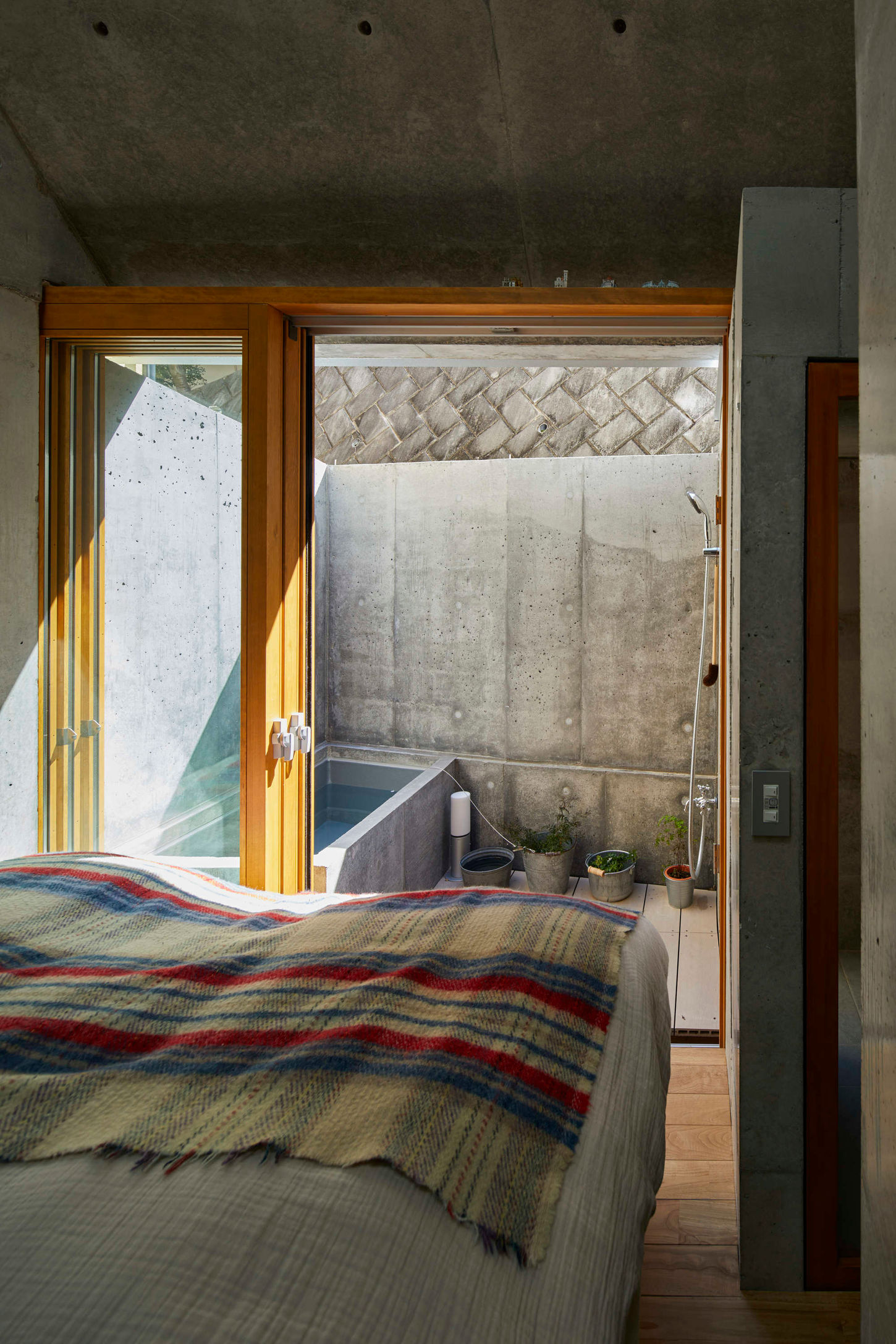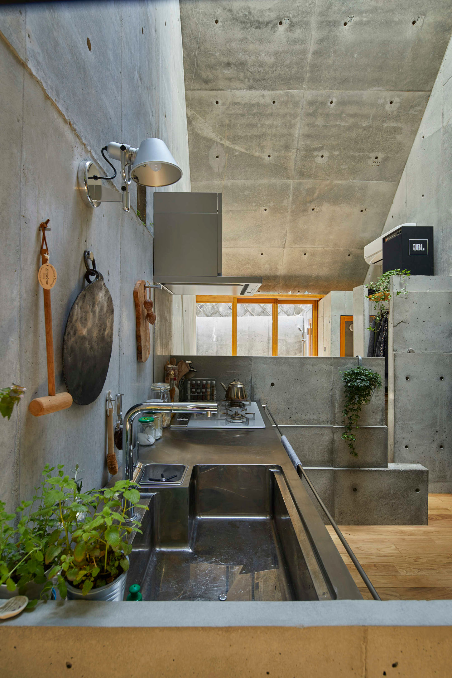 This house in the center of Tokyo is the home of a couple. The building area is only 18.84 square meters. Despite occupying a very small plot of land, they are able to live a prosperous and fulfilling life. The design incorporates two skylights of different sizes and heights, allowing direct sunlight and moonlight to pour into the room, creating a dynamic atmosphere that reflects the changing seasons. Within this compact Tokyo residence, residents can experience the passage of seasons firsthand. They enjoy an open-air bath on the bath terrace, taking in hot, cold, sunny, rainy, and snowy days every day. The garden features plants that can be seen from the dining space facing the street, blending indoor and outdoor living seamlessly. Collected LP records and books are lined up throughout the house, emphasizing a love for music and literature. The couple's philosophy is not to minimize their space but to maximize abundance, making the most of every corner. At the end of the large window is a private road accessible to local residents, adding a sense of community to their living environment. The garden is designed with a life road, serving both as a pathway and a planting area. Neighbors often talk about gardening, walking their dogs, and children frequently look into this small house with curiosity and interest, fostering a close-knit neighborhood atmosphere.