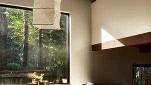 Designed by noted Bay Area architect Joseph Esherick, the home was third in a series of affordable demonstration houses commissioned by the developers of The Sea Ranch, a weekend home community and cultural experiment grounded in 1960s idealism. The home’s current owner, its second since its construction in 1968, sought to restore the home while improving its liveability and performance. George Homsey, Esherick’s partner, consulted on the exterior restoration. New plywood and laminate kitchen cabinets with apartment-size appliances were designed to utilize every inch of space. The original plywood shelving was restored using reclaimed materials from the demolition. A hinged partition gives privacy between the two bedrooms, designed to preserve the original intent of the bedroom level by folding away into the wall when not in use. Large windows connect the interior space to the coastal redwood forest, a towering specimen just outside the workspace window. Team: Chad DeWitt Leila Ghaz Interior Design: Framestudio Builder: Owner