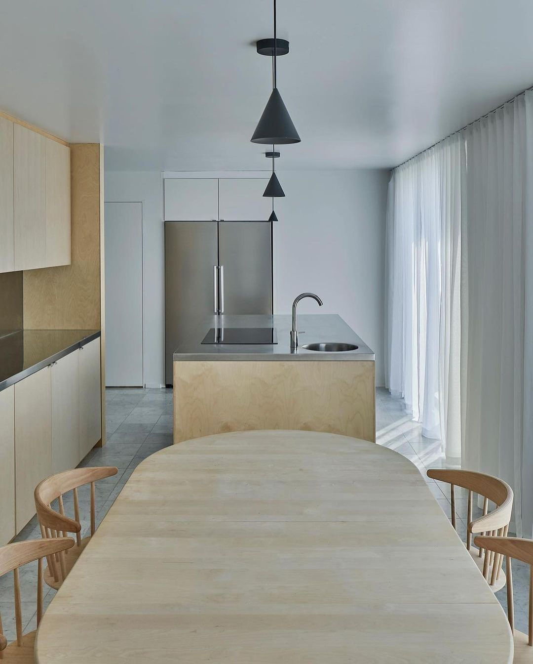 Unusually strict zoning regulations ‘designed’ this private house. The site, positioned next to the major river Lule älv, lies in the north of Sweden, just south of the Arctic Circle. The local regulations stipulated a house with a maximum building height of just 4.2 metres. It also stipulated that the house must have a red roof. The best way to realise a proper second floor, working within these restrictions and, at the same time, making the most of the views towards the river, was to use a single pitch roof construction. Since the building height for a single pitch roof is a calculated mean value around the house, the resulting building height could be kept within the regulations. The house is composed of two trapezoidal volumes, facing in opposite directions. The larger volume forms the living space, orientated toward the river. The smaller contains a garage and sauna with a roof terrace. To emphasize the building’s sculptural qualities, the entire house was finished in red paint, fulfilling at the same time the stipulation for a red roof. Nominated for the Rödfärgspriset 2022.