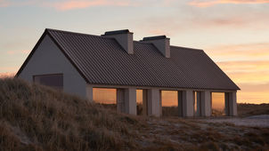 Vipp Cold Hawaii is a contemporary guesthouse in Thy National Park, Denmark, designed by the local architect studio Hahn Lavsen. The project, which opened in 2024, involved transforming a historic early 1900s fisherman's cottage on a secluded 9,900-square-meter plot into a bookable retreat for surfers and nature lovers. While its silhouette hints at the traditional cottages of the area, the new structure features minimalist geometric forms and a restrained material palette.