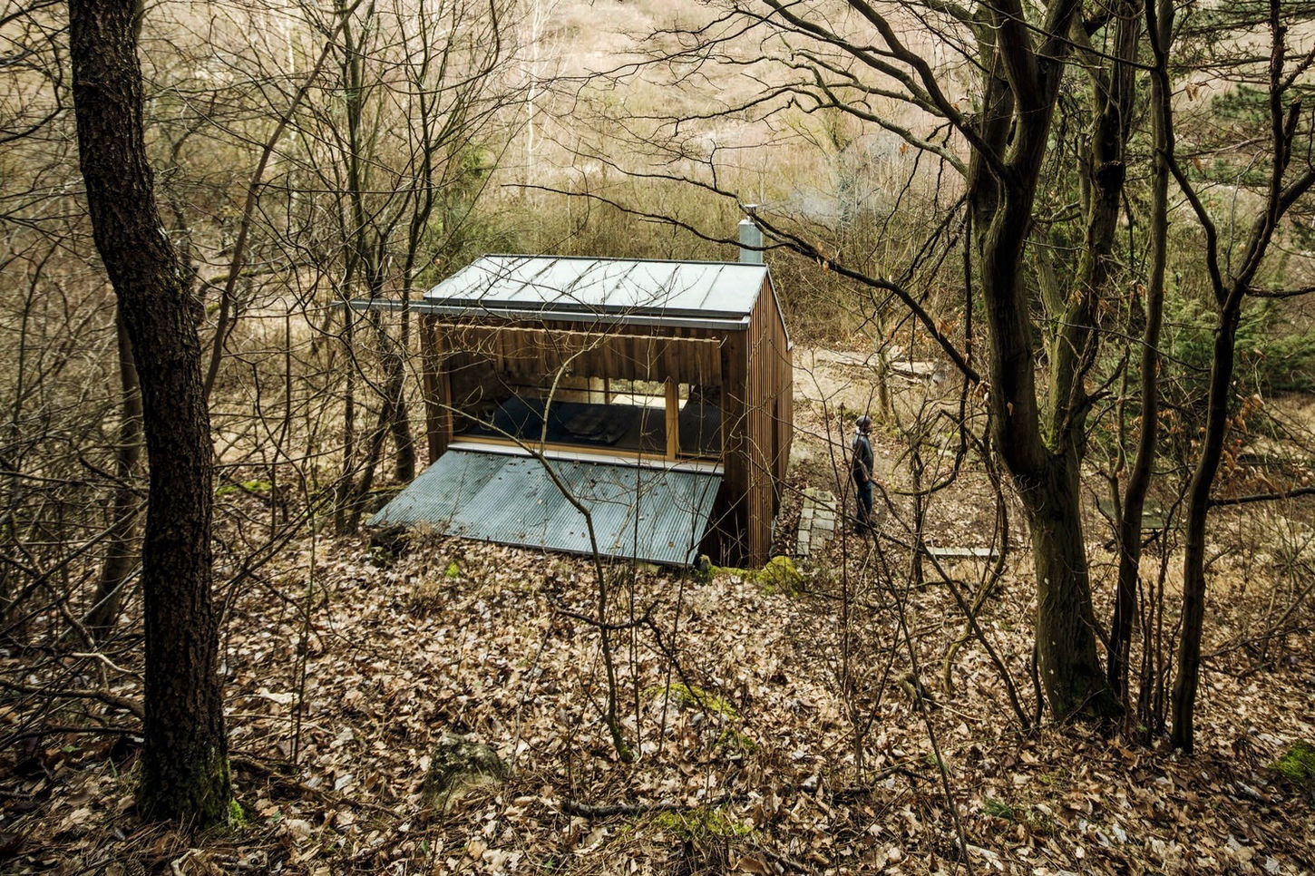 Tom's Hut, designed by Raumhochrosen Architektur Erzeugnisse, is a minimalist woodland cabin located in the Wienerwald, Austria, and created for an Austrian singer-songwriter and mental coach as a retreat from his hectic city life. The project is a reinterpretation of a dilapidated old building, carefully drafted to align with the passions of its owner. The structure is designed as a sanctuary for recreation, meditation, and personal development, offering a place for its owner to find balance and reconnect with nature. The design of Tom's Hut focuses on simplicity and a deep connection to its environment. The cabin features an angular shape that encloses a two-level space and is constructed entirely of wood, with an untreated larch exterior that helps the small structure blend seamlessly into its forest setting. One of its unique features is the ability to be firmly closed on all sides with wooden shutters, or to have its windows opened to provide varying views of the surrounding wilderness. The interior space, which some have described as "chapel-like," is reduced to the bare minimum, providing only the essentials for a contemplative life. The off-grid nature of the cabin is a core aspect of its design. It deliberately eschews modern amenities like electricity, relying on a single water fountain, an indoor fireplace, an outdoor fire pit, and a stove for cooking and heating. This intentional rusticity provides an escape from modern conveniences and reinforces the project's purpose as a back-to-basics retreat. The thoughtful connection between the interior and the outdoors is emphasized by large openings at the front and back of the hut, visually and physically linking the living space to the surrounding nature. Credits: Client: Thomas Andreas Beck Design Team: Heike Schlauch, Robert Fabach Wood Construction: Meiberger Holzbau Photography: Albrecht Imanuel Schnabel