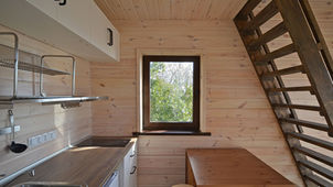 The Ecohouse Module S22, designed by Ilya Shevchenko for the architectural bureau Strawmodul, is a prefabricated and modular tiny house series focused on eco-friendly, sustainable living. The project was developed as a "growing" home, allowing for phased construction and future expansion from the initial 22-square-meter module to a larger residence of up to 100 square meters. The initial prototype, completed in 2019, is situated on the rocky coast of Crimea.