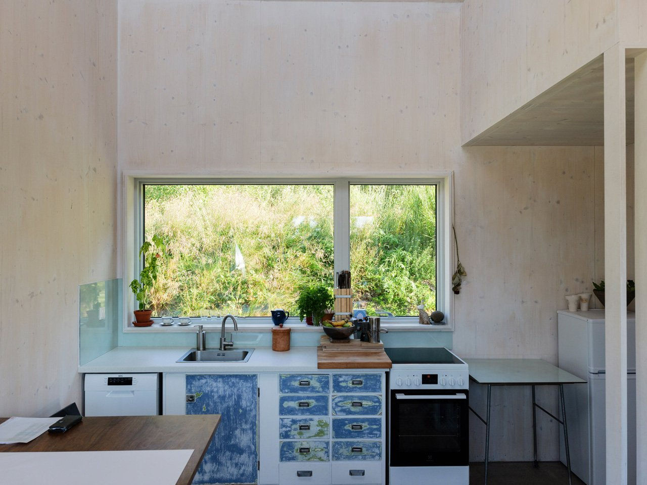 The Atelier Nyp is a sustainable artist's studio and guesthouse designed by Studio Bua on the site of a former sheep shed in remote western Iceland. Completed in 2023, the cabin was built on the repurposed concrete foundation of the original structure, which had been destroyed by extreme weather. This approach minimized the project's environmental impact and maximized existing resources, both material and cultural. Located in Skarðsströnd, the cabin is part of a broader development by Studio Bua of former farm buildings into a home, cultural spaces, and additional guesthouses. The project is named after the Nypurhyrna mountain that rises up from behind it. The cabin features a deliberately simple, jet-black corrugated steel exterior that references the local vernacular and protects against the harsh Icelandic weather. Its off-center pitched roof echoes the distinctive shape of one of the area's dominant mountain peaks. The interior features exposed cross-laminated timber (CLT) walls, which create a warm and cozy atmosphere. The space is divided into two independent units: a workspace with living quarters for the artist and her husband, and a self-contained mini-apartment for guests. Salvaged materials were incorporated throughout the project, including a staircase from a historic Reykjavík building and kitchen units from a 1950s apartment. Credits Architect: Studio Bua Architects: Sigrún Sumarliðadóttir (co-founder, Studio Bua) Client: Þóra Sigurðardóttir and Sumarliði R. Structural Engineer: Gísli Guðmundsson Contractor: Eiríkur Kristjánsson Photographer: Studio Bua Manufacturers: Cross-Laminated Timber (CLT), concrete, and corrugated steel