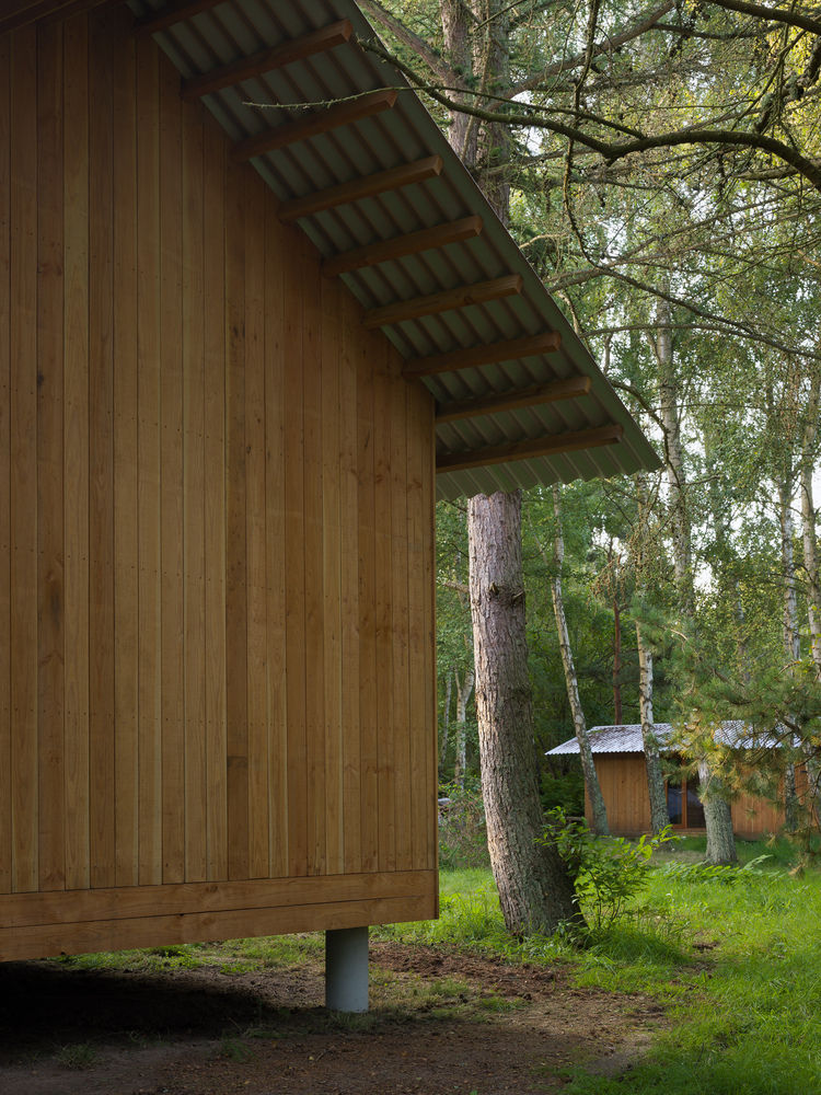 The Vollerup Summerhouse, designed by Høyer Arkitektur, is a modern retreat located in a wooded area on the northwestern coast of Zealand, Denmark. The project is a contemporary interpretation of the traditional longhouse typology, with a minimal design that harmonizes with the surrounding nature. The elongated, single-story structure is carefully positioned to create a calm, horizontal contrast to the vertical trees, effectively creating a secluded oasis. A key feature of the design is its glulam grid construction, which allows for a lightweight yet structurally sound framework. The house rests on cast point foundations, a gentle approach that minimizes its impact on the forest floor and preserves the surrounding tree roots. This method reflects a philosophy of architecture as temporary inhabitation rather than a permanent fixture in the landscape. While the north facade is mostly closed to provide privacy, the south facade features extensive floor-to-ceiling glazing, allowing for abundant natural light and a strong visual connection to the forest. The interior of the house is defined by its clean lines and timber elements, creating a warm and inviting atmosphere. The design includes features that promote low-impact living, such as a naturally planted wastewater filtration system, a low-energy heating system, and triple-paned windows. The house also incorporates flexible, modular rooms built around an atrium, which serves as the heart of the home. The house was commissioned by a Danish interior designer and the founder of Organic Basics, who sought a nature retreat for their family. Credits Architecture Firm: Høyer Arkitektur Architect: Thomas Høyer Client: Christoffer Immanuel and Line Thygesen Photographer: Hampus Berndtson
