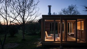 "La Petite Maison" (meaning "The Little House") is a 35-square-meter wooden holiday home in the French countryside town of Guitinières, completed in 2020 by the Kyoto-based architecture and maker studio 2m26. Designed and built by the studio's founders, Mélanie Heresbach and Sébastien Renauld, the guesthouse accommodates up to two people and is situated on a sprawling property away from the main residence, surrounded by fields, woods, and an orchard. The project prioritizes a connection to the outdoors, with large windows, glass walls, and an open-air courtyard that blurs the line between the interior and the surrounding landscape. To minimize environmental impact, the minimalist house was constructed using locally sourced Douglas fir boards, a material that can be easily disassembled and recycled. It was assembled on-site with the help of the owners and sits on concrete pillars, which raises it slightly off the ground. The compact structure was designed to provide flexibility, with sliding glass doors and large shutters offering customizable protection from the wind or sun while allowing various views and natural light. The interior features a simple, open layout with four rooms partitioned by an additional set of movable doors and screens. The minimalist design is emphasized by furniture and countertops made from the same Douglas fir, which draws attention to the serene countryside views. Credits Architects: Mélanie Heresbach and Sébastien Renauld of Studio 2m26 Photographer: Studio 2m26