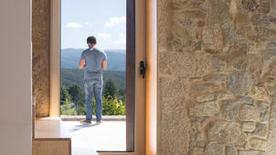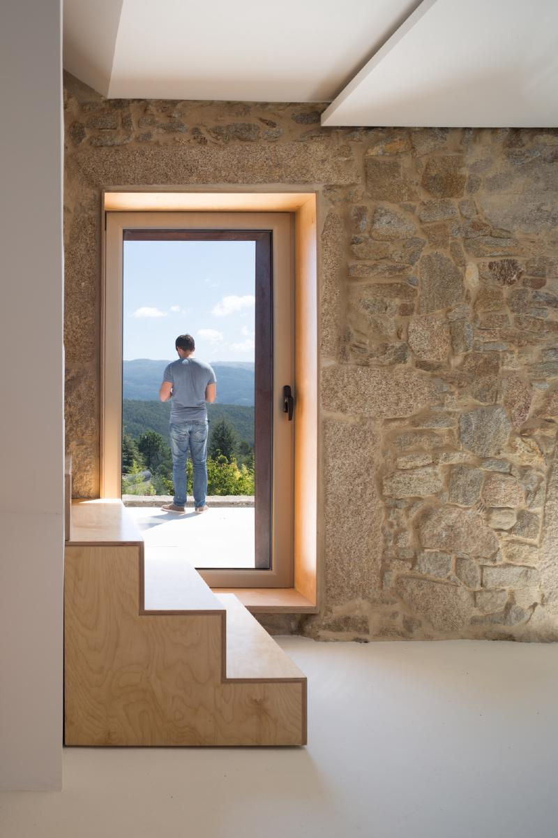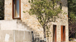 Designed by Paulo Martins ARQ&DESIGN, the SH House is a compact, two-story weekend retreat located in Sever do Vouga, Portugal. Completed in 2016, the project involved the renovation of an existing stone house, which was originally built in a pastoral countryside setting. The architect's key intervention was the integration of contemporary minimalist design elements while preserving the structure's historical stone walls. The house has a total floor area of 45 square meters. On the ground floor, the social areas—a small kitchen, dining area, and living space—enjoy a direct connection with the surrounding outdoor areas. A weathering steel (corten) staircase, which also incorporates storage, divides the two floors and adds a striking modern contrast to the old stone walls. The upstairs contains a bedroom and bathroom, offering privacy and scenic views of the landscape. Throughout the interior, a minimalist aesthetic and light colors are used to create a sense of spaciousness and openness, maximizing the perception of the compact volume. Project credits Architecture: Paulo Martins ARQ&DESIGN Photography: Ivo Tavares Studio