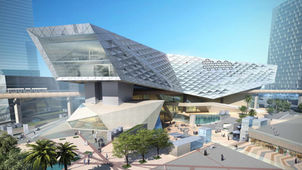 The MOBE is one of six projects FXCollaborative is designing within the King Abdullah Financial District (KAFD), a new 55 million-square-foot mixed-use urban community. The building is sited on a large plaza bisected by a sunken Wadi, a pedestrian park. Over 340,000 square feet of permanent and temporary exhibition space will feature works related to arts and architecture in the peninsula. Other programmatic elements include a 150-seat auditorium, a destination restaurant and terrace. The Saudi Arabian world heritage sites of Madain Saleh and At-Turaif inspired the Museum's chiseled, crystalline form. The building's exterior cladding expresses its programmatic functions; the lower public floors are transparent, while upper levels are more opaque, clad with prismatic laminated glass panels which create a varied textural quality and allow daylight to penetrate at controlled locations.