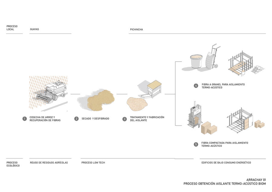 Designed by Javier Mera Luna in collaboration with Lesly Villagrán and María Beatriz Moncayo, "Arrachay 01" is a 25-square-meter workspace cabin perched over 4,000 meters above sea level in the Andes Mountains of Ecuador. Completed in 2020, the project was conceived as an auto-commissioned "workation" retreat to challenge new ways of working remotely in a stunning natural setting. The name "Arrachay" is a playful nod to the local Quichua language, combining achachay ("very cold") and arrarray ("very hot," referencing nearby thermal pools) to capture the contrast of the extreme mountain climate. The main architectural challenge was to create efficient insulation in the cold, high-altitude climate without relying on petroleum-based materials, which aligned with the architects' goal for a minimal carbon footprint. To achieve this, the team collaborated with YES Innovation to develop and utilize BIOM, a biosource insulation made from rice fibers. This innovative material repurposes agricultural waste from coastal communities in Ecuador, creating a circular economy. The BIOM insulation was hand-packed into the wooden perimeter structure and treated with a natural fire retardant, ensuring high thermal performance despite wide temperature variations. The use of bulk insulation also helps optimize on-site installation and prevent thermal bridging. The cabin’s timber structure is designed to be flexible and adaptive, blending harmoniously with the cloud-cloaked, mountainous landscape. A large window wall provides a visual connection to the breathtaking natural surroundings. The project embodies a philosophy of incorporating local technology and addressing environmental challenges through small-scale, thoughtful architecture. Credits Architects: Javier Mera Luna, Lesly Villagrán, and María Beatriz Moncayo Insulation Development: YES Innovation Photography: JAG Studio Location: Papallacta, Ecuador