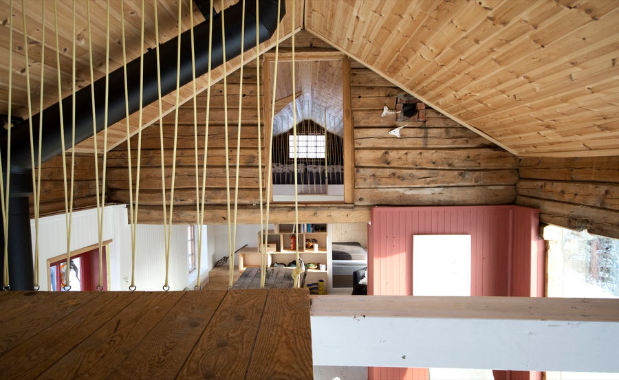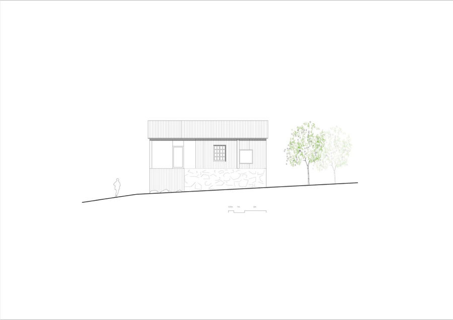 "Boggestranda is a revitalized cabin retreat in Eidsvåg, Norway, designed by Rever & Drage Architects. Completed in 2016, the project converted an old building with a simple cellar and ten small rooms into a functional, airy cabin that offers stunning views of the fjord and mountain landscape. The design philosophy centered on retaining the traditional exterior appearance facing the road and village, while opening up the structure to the scenery on the other side. The original building featured a mix of materials, including wood, stone, and corrugated iron. Rever & Drage incorporated this eclectic feel into the new design, adding large glass panels to the south-east wall. This created unobstructed views from the kitchen, sitting, and dining areas. A long window was also added in the loft-style bedroom, allowing for picturesque views when lying in bed. To create a more open and modern living space, most of the interior partitions were removed. The loft and ground floor were combined into a single, open space, while the bedroom was the only room to be preserved. Functional updates were also made, including a tiled area with underfloor heating to dry wet shoes and an insulating wind membrane in the walls to improve heat retention. The existing corrugated iron roof was covered with a new wooden roof. On the west side, a simple covered shelter was added to the original facade, providing a dry space for equipment and creating an additional outdoor area. Credits Architects: Rever & Drage Architects Design Team: Tom Auger, Martin Beverfjord, Eirik Lilledrange Photography: Tom Auger "