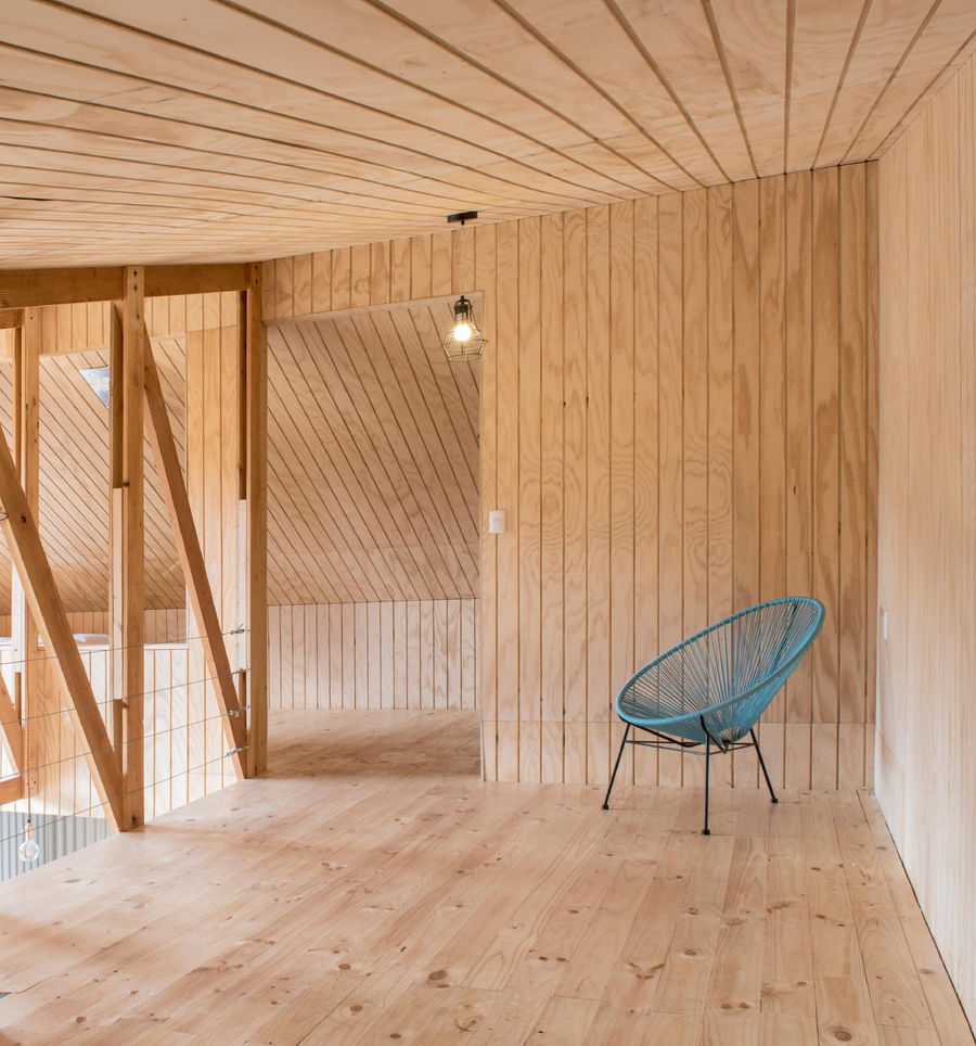 "La Quimera House is a single-family vacation home in Coyhaique, Chilean Patagonia, designed by the Chilean studio Ruca Proyectos. The project is situated within a forest just outside the city, overlooking the Simpson River and the Mackay hill. Its architecture is rooted in the traditional constructions of Southern Chile, which are adapted to withstand the region's harsh climate of frequent snow, rain, and cold. The house was designed with a pure, simple volume and built with local materials to accommodate a tight budget and limited local labor and technology. To protect the structure from ground moisture and cold, the house is elevated on wooden piles. Its exterior is sheathed in black zinc sheets, providing a hermetic shield against the arduous weather. In contrast, the interior is clad entirely in grooved pine plywood, creating a warm, cozy, and rustic atmosphere. The house is strategically designed to maximize its connection with the surrounding nature. It is more enclosed toward the access, but the side facing the views opens up completely through large windows that lead to a generous wooden deck. The main floor features an open living space that includes the main living room, an open kitchen, six built-in bunk beds, a guest bathroom, and a suite. A second level offers a wide open floor plan with a balcony overlooking the scenery. A staircase also doubles as an interior resting space and provides access to the terrace. Credits Architects: Ruca Proyectos Architect In Charge: Carlos Torres Alcalde Collaborator: Consuelo Alfaro Engineer: Joaquín Valenzuela Photography: Ignacio Santa Maria Manufacturers: Arauco, InterLight"