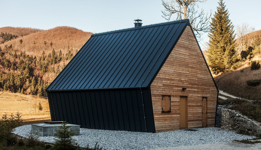 "Designed by Slovenian architects Jana Hladnik Tratnik and Tina Lipovž of Studio PIKAPLUS, The Wooden House is an 82-square-meter family retreat completed in 2015. Situated in a forest clearing in Kanji Dol, Slovenia, the project was created for a young Slovenian family who, living in a big city in Italy, wanted a home that allowed them to be surrounded by nature. The design is a modern interpretation of the traditional mountain cabin, with exaggerated angles and oblique sides that give it a distinctive appearance while allowing it to blend into the surrounding landscape. Its simple form was intentionally created to minimize disruption to the environment and withstand the harsh Slovenian weather. The Wooden House's exterior is protected by durable, dark metal siding and thick insulation, which contrast with the light-wood interior. This warm, timber-clad interior offers a sense of being outdoors and helps blur the line between interior and exterior spaces. A large glass facade on one side of the house lets in ample natural light and provides expansive views of the forest and hills, connecting nearly every room to the natural surroundings. The layout maximizes the home's limited space with an open-plan living, dining, and kitchen area on the ground floor. Two bedrooms and a play area are located on the second level and overlook the main living spaces. The house also features a sauna on the ground floor and minimalist furniture in dark tones that provides contrast to the light wood interior. A deck and minimal landscaping integrate the house into its surroundings. The project received second place nationally for the best wooden construction in Slovenia in 2016. Credits Architects: Jana Hladnik Tratnik and Tina Lipovž of Studio PIKAPLUS Photography: Miha Bratina Manufacturers: ALJOŠIN, INLES, and RIHTER"