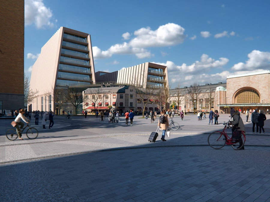 With the mission to revitalize the area of Eliel and Asema squares downtown Helsinki, the concept “Klyyga” was developed. Translated into “the crossing” in local slang, Klyyga aims to both fit in and add to contemporary Helsinki. The project emphasizes on the two city grids that meets at these squares, Elielinaukio and Asema-aukio, and the aim is to create a vibrant new plaza and city block, supporting the Helsinki urban strategy: To make the city center more vibrant and accelerate green mobility.